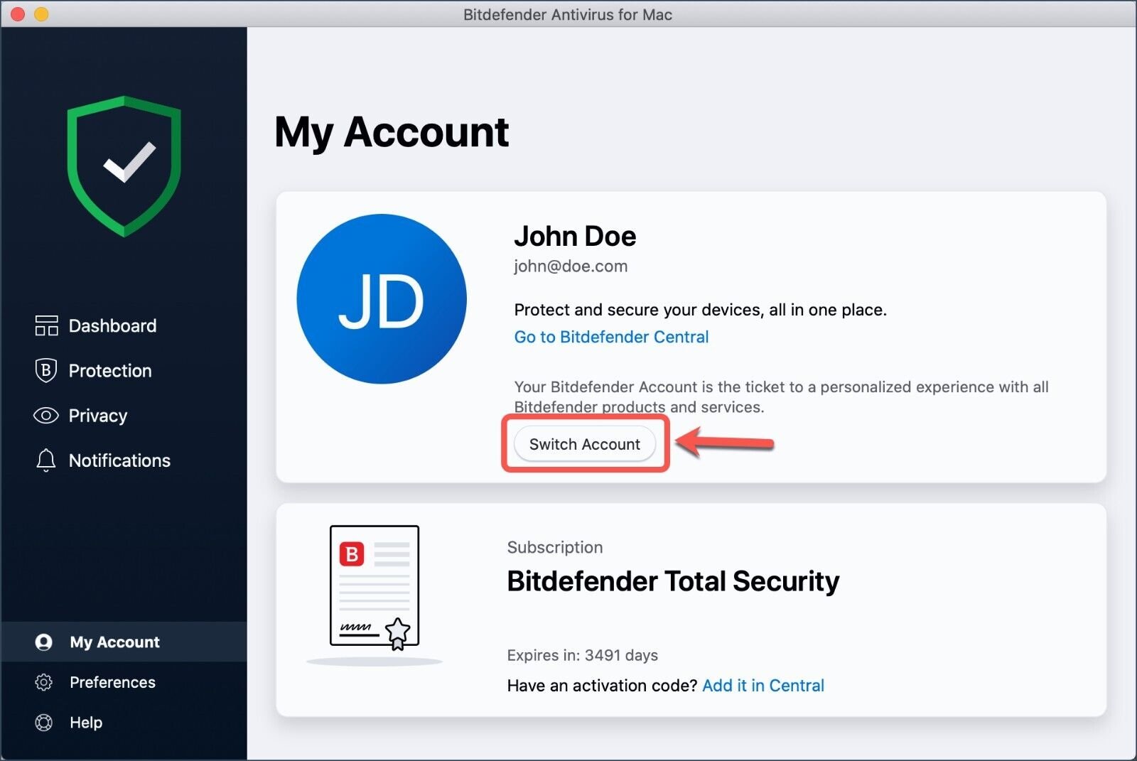 an account will be provided to you which will be valid for 3 Years and 5 Devices. You can change the Bitdefender central account details such as Email and password.
